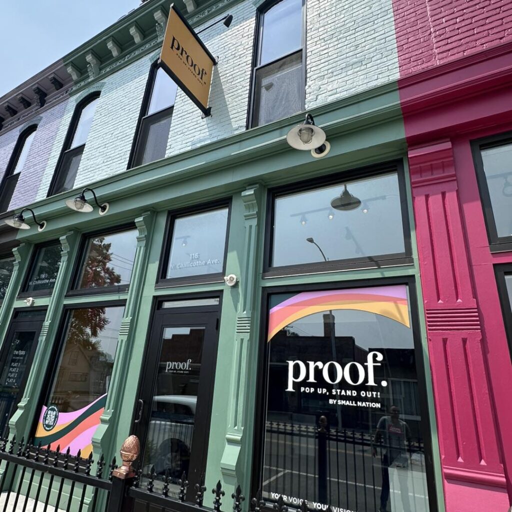 Proof is a modern pop-up shop on Rainbow Row in Downtown Bellefontaine, offering short-term retail space for small businesses and entrepreneurs—no long-term lease required. Our move-in ready storefront includes utilities, 1–3 month lease options, and optional marketing support to help grow your brand and connect with the community.